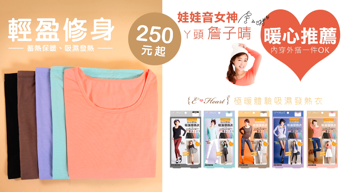 Eheart發熱衣有五款顏色